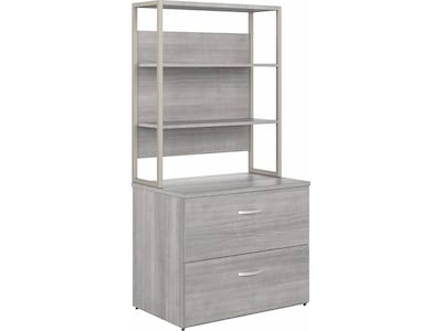Bush Business Furniture Hybrid 2-Drawer Lateral File Cabinet with Shelves, Letter/Legal, Platinum Gray, 36" (HYB018PGSU)