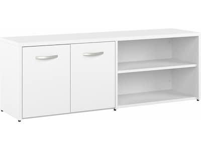 The Bush Business Furniture Hybrid low storage cabinet with doors and shelves offers a stylish, long-lasting workplace organization solution for the modern professional. Its open and closed compartments each include one fixed shelf and one adjustable shelf to accommodate everything from books and reference materials to decorations. Each shelf supports up to 50 lbs., so storing and displaying larger items is never an issue. The surface of the storage credenza can be used as a practical place to keep a small printer and other equipment or to give your workspace a personal touch with pictures, plants, and more. Find the perfect look for your space with five contemporary finish options: black walnut, modern hickory, platinum gray, storm gray, and white. This office credenza storage cabinet has been meticulously tested to meet or exceed ANSI/BIFMA quality standards for safety, durability, and performance and is backed by the Bush Business Furniture 10-year manufacturer warranty. See the full Bush Business Furniture Hybrid collection for coordinating items to enhance your workspace as needed, including computer desks, file cabinets, and bookcases (coordinating items sold separately). American-made with US and imported parts.