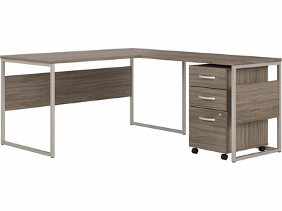 Bush Business Furniture Hybrid 60"W L Shaped Table Desk with Mobile File Cabinet, Modern Hickory (HYB029MHSU)