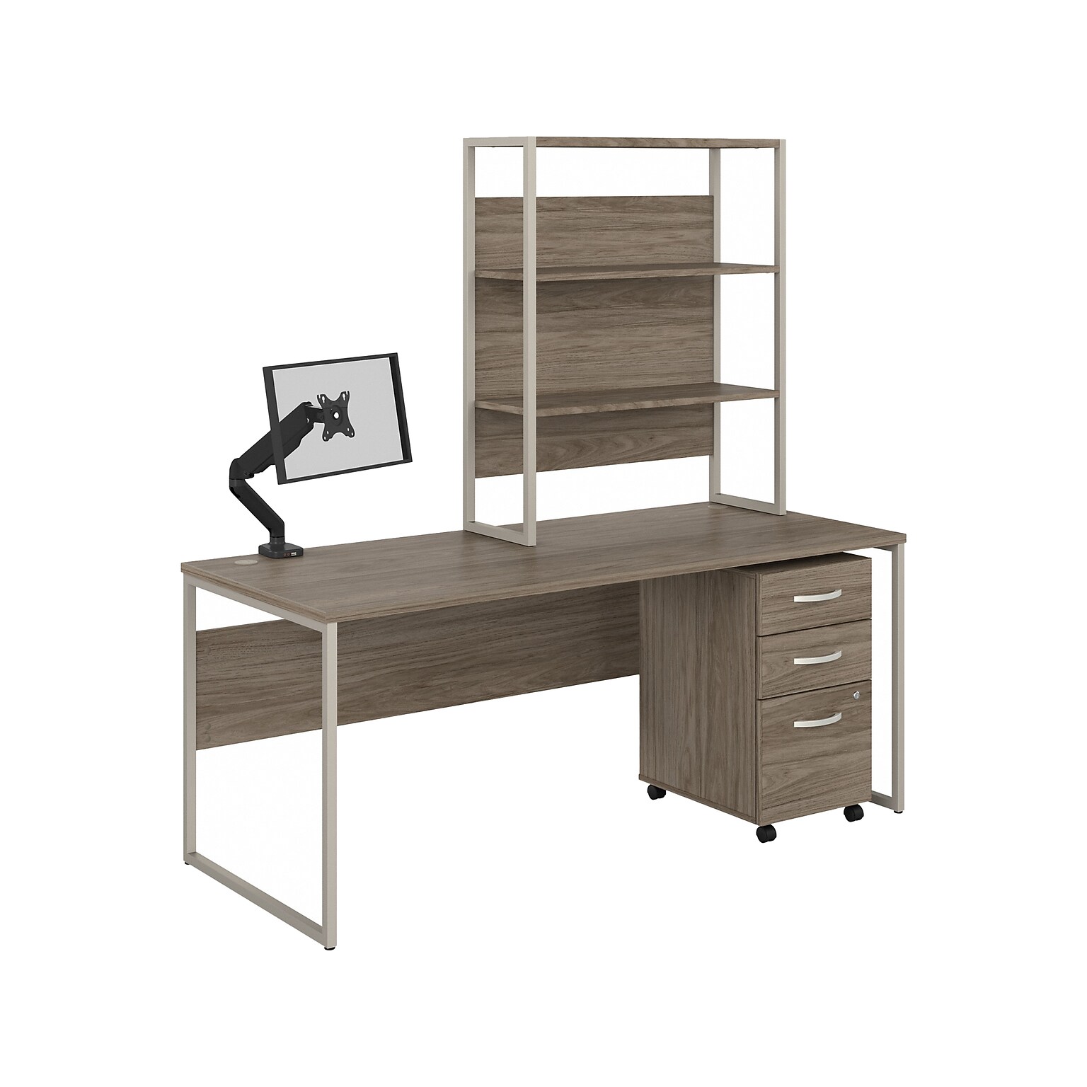 Bookcase hutch, three-drawer mobile file cabinet, adjustable monitor arm with USB
