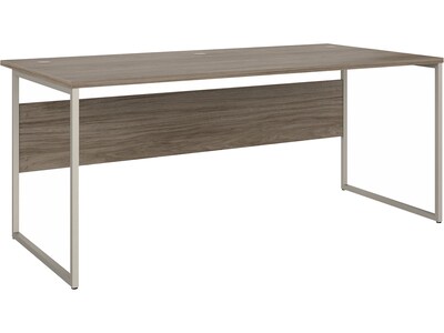 The Bush Business Furniture Hybrid 72"W x 36"D computer table desk blends a durable work surface with sturdy metal legs to offer a stylish, long-lasting solution for the modern professional. Tackle your next project or assignment with a computer, books, and more on a desktop that supports up to 200 lbs. Three built-in wire management grommets keep cords and cables in order, so your work area remains free from unnecessary clutter. The computer desk's open leg design and finished privacy panel allow it to look great facing any direction in a home or professional office. Find the perfect look for your space with five finish options: black walnut, modern hickory, platinum gray, storm gray, and white. This modern desk has been meticulously tested to meet or exceed ANSI/BIFMA quality standards for safety, durability, and performance and is backed by the Bush Business Furniture 10-year manufacturer warranty. See the full Hybrid collection for coordinating items to enhance your workspace as needed, including bookcases, lateral file cabinets, and storage cabinets (coordinating items sold separately). American-made with US and imported parts.