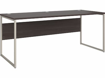 The Bush Business Furniture Hybrid 72"W x 30"D computer table desk blends a durable work surface with sturdy metal legs to offer a stylish, long-lasting solution for the modern professional. Tackle your next project or assignment with a computer, books, paperwork, and more on a desktop that supports up to 200 lbs. A built-in wire management grommet keeps cords and cables in order, so your work area remains free from unnecessary clutter. The computer desk's open leg design and finished privacy panel allow it to look great facing any direction in a home or professional office environment. Find the perfect look for your space with five contemporary finish options: black walnut, modern hickory, platinum gray, storm gray, and white. This modern desk has been meticulously tested to meet or exceed ANSI/BIFMA quality standards for safety, durability, and performance and is backed by the Bush Business Furniture 10-year manufacturer warranty. See the full Hybrid collection for coordinating items to enhance your workspace as needed, including file cabinets, bookcases, and storage cabinets (coordinating items sold separately). American-made with US and imported parts.