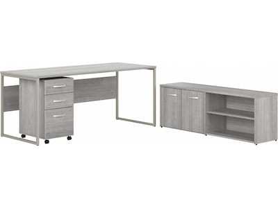 Bush Business Furniture Hybrid 72"W Computer Table Desk with Storage and Mobile File Cabinet, Platinum Gray (HYB014PGSU)