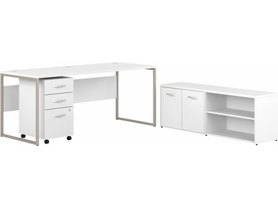 Bush Business Furniture Hybrid 72"W Computer Table Desk with Storage and Mobile File Cabinet, White (HYB014WHSU)