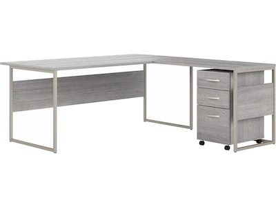 Bush Business Furniture Hybrid 72"W L Shaped Table Desk with 3 Drawer Mobile File Cabinet, Platinum Gray (HYB010PGSU)