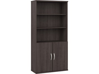 Bush Business Furniture Hybrid 73"H 5-Shelf Bookcase with Doors, Storm Gray Laminated Wood (HYB024SG)