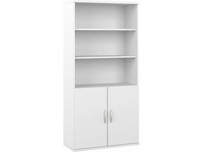 Bush Business Furniture Hybrid 73"H 5-Shelf Bookcase with Doors, White Laminated Wood (HYB024WH)