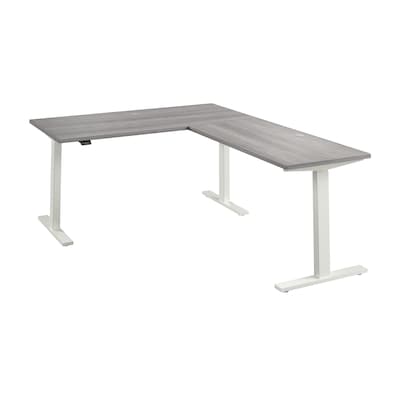 Treat yourself to a healthier, more productive workspace with Bush Business Furniture's Move 60 Series L Shaped Standing Desk. The height adjustable desk quickly and easily lifts from a low of 27 inches to a high of 46.7 inches; just lift up or press down on the control panel to raise or lower the surface. Set a custom alert to remind you when to change positions and use the electric desk's preset feature to save two preferred heights. The thermally fused laminate surface is resistant to scratches and stains while 16-gauge steel legs support the corner standing desk for a weight capacity of 200 pounds. The 10-foot power cord plugs into a standard outlet so the sit-stand desk can be used in virtually any setting. This ergonomic office desk has been rigorously tested to meet or exceed ANSI/BIFMA quality standards for safety, durability and performance and is backed by a 5 Year Warranty.