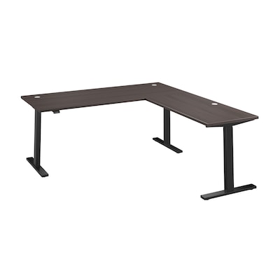 Treat yourself to a healthier, more productive workspace with Bush Business Furniture's Move 60 Series L Shaped Standing Desk. The height adjustable desk quickly and easily lifts from a low of 27 inches to a high of 46.7 inches; just lift up or press down on the control panel to raise or lower the surface. Set a custom alert to remind you when to change positions and use the electric desk's preset feature to save two preferred heights. The thermally fused laminate surface is resistant to scratches and stains while 16-gauge steel legs support the corner standing desk for a weight capacity of 200 pounds. The 10-foot power cord plugs into a standard outlet so the sit-stand desk can be used in virtually any setting. This ergonomic office desk has been rigorously tested to meet or exceed ANSI/BIFMA quality standards for safety, durability and performance and is backed by a 5 Year Warranty.