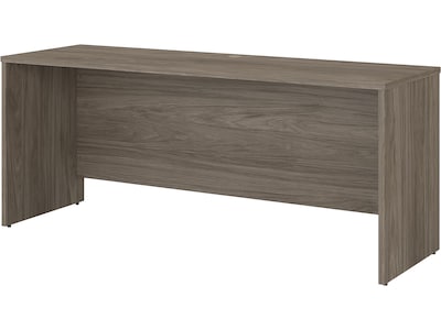 The Bush Business Furniture Office 500 71"W x 23"D credenza desk offers a durable work surface with a sophisticated style that fits the modern workplace. The Bush Business Furniture Office 500 71"W x 23"D credenza desk gives today's professionals the ability to create a workspace that caters to their unique needs and style. A practical stand-alone work surface, the credenza can also be used with the coordinating 72"W x 36"D executive desk and/or 42"W return (sold separately) to form a U- or L-shaped desk. The desktop offers plenty of room to spread out with materials while built-in wire management helps keep cords and cables in order. Commercial-quality construction allows the computer desk to support up to 200 pounds, and the durable thermally fused laminate surface resists scratches and stains to preserve its appearance throughout years of use in a busy workplace. This modern office desk is tested to meet ANSI/BIFMA quality standards for safety and performance and is backed by a 10-year warranty. American-made with US and imported parts.