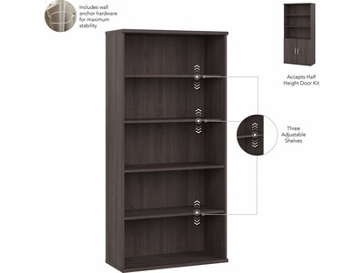 Bush Business Furniture Studio A 73"H 5-Shelf Bookcase with Adjustable Shelves, Storm Gray Laminated Wood (STA010SG)