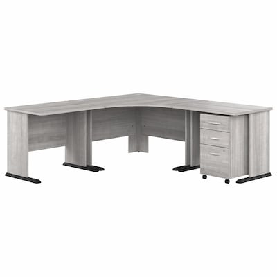 Bush Business Furniture Studio A 83"W Large Corner Desk with 3 Drawer Mobile File Cabinet, Platinum Gray (STA003PGSU)