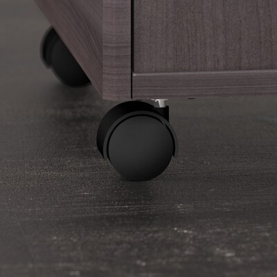 The Bush Business Furniture Studio C 3 Drawer Mobile File Cabinet rolls with you throughout your office or remains in place as needed on any surface. You'll have your letter, legal and A4-size paperwork organized in no time as the Mobile File Cabinet ships fully assembled for your convenience. Two box drawers hold your pens, notepads, small office supplies and more to organize your workspace. The file drawer opens on full-extension ball-bearing slides, making it easy to reach those pesky papers all the way at the back. Dual-wheeled, hooded casters keep the 3 drawer cabinet moving wherever you want or remain in place on your office floor or carpet. A single lock secures the bottom 2 drawers to keep your paperwork private. When space is at a premium, the Mobile File Cabinet conveniently fits under your desk. Eye-catching Brushed Nickel drawer pulls complement the White or Storm Gray finish to make the cabinet as attractive as it is functional. This contemporary office furniture comes with a 10 Year Warranty and meets ANSI/BIFMA quality test standards. See the full collection for coordinating items available to make your office your own with Studio C. American made with U.S. and imported parts.