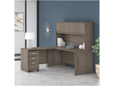 Organize your office with the durable, attractive and functional Bush Business Furniture Studio C desk hutch. With four doors featuring self-closing Euro-style hinges, the hutch conveniently stores office supplies, books, and more to keep your Studio C desk organized. The hutch mounts to the 72"W office desk or credenza desk (sold separately) and provides a fully finished back panel. Add a coordinating tackboard (sold separately) to keep your important notes within sight while you work. The thermally fused laminate construction resists scratches and stains throughout your 40-plus hour week. The classic design is available in your choice of several contemporary or traditional finish options to fit any workspace. The four-door hutch comes with a 10-year manufacturer limited warranty and meets ANSI/BIFMA standards. See the full collection for coordinating items available. American made with U.S. and imported parts.