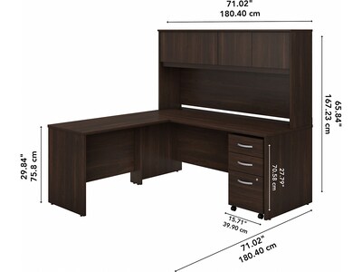 Bush Business Furniture Studio C 72"W L Shaped Desk with Hutch, Mobile File Cabinet and Return, Black Walnut (STC006BWSU)