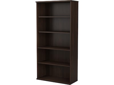 The Bush Business Furniture Studio C five-shelf bookcase looks great, works hard, and adjusts to fit the needs of your office. Designed with two fixed and three adjustable shelves, the tall bookcase holds your books and reference materials with room for your favorite decorative accents. Store a variety of items on the spacious and durable shelves, designed to hold up to 50 lbs. each. A thermally fused laminate finish fends off scratches, stains, and dents throughout years of everyday use. The five-shelf bookcase features a classic design and comes in black walnut finish to fit perfectly in any workspace. Purchase a set of bookcases in your choice of several contemporary and traditional finishes to build a complete storage wall that organizes your office and expresses your style. This five-tier bookcase is backed by a 10-year warranty and meets ANSI/BIFMA quality test standards. American-made with US and imported parts.