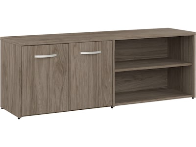 The Bush Business Furniture Studio C low storage cabinet with doors and shelves offers a stylish, long-lasting workplace organization solution for today's professionals. Its open and closed compartments each include one fixed shelf and one adjustable shelf to accommodate everything from books and reference materials to decorations. Each shelf supports up to 50 lbs., so storing and displaying larger items is never an issue. The surface of the storage cabinet can be used as a practical place to keep a small printer and other equipment or to give your workspace a personal touch with pictures, plants, and more. This office storage cabinet has been meticulously tested to meet or exceed ANSI/BIFMA quality standards for safety, durability, and performance and is backed by the Bush Business Furniture 10-year manufacturer warranty. American-made with US and imported parts.