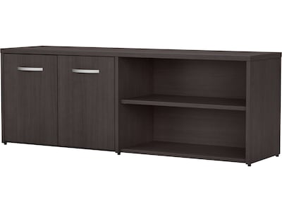 The Bush Business Furniture Studio C low storage cabinet with doors and shelves offers a stylish, long-lasting workplace organization solution for today's professionals. Its open and closed compartments each include one fixed shelf and one adjustable shelf to accommodate everything from books and reference materials to decorations. Each shelf supports up to 50 lbs., so storing and displaying larger items is never an issue. The surface of the storage cabinet can be used as a practical place to keep a small printer and other equipment or to give your workspace a personal touch with pictures, plants, and more. This office storage cabinet has been meticulously tested to meet or exceed ANSI/BIFMA quality standards for safety, durability, and performance and is backed by the Bush Business Furniture 10-year manufacturer warranty. American-made with US and imported parts.