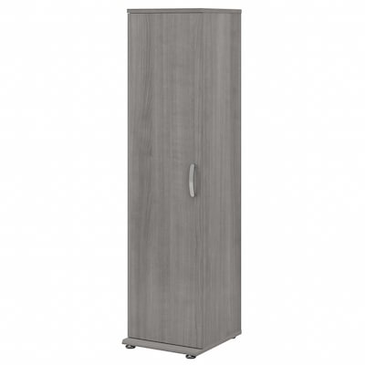 The Bush Business Furniture Universal tall narrow storage cabinet with door and shelves features a commercial-quality design and contemporary styling that suits virtually any home or professional environment. Organize your office, break room, garage, laundry room or any other work or living space with a tall skinny cabinet that's built to last and boasts plenty of storage capacity. The door opens to reveal one fixed shelf and two adjustable shelves for flexible storage of office supplies, tools, household items, and more. Each shelf supports up to 35 lbs., so storing larger materials and equipment is no problem. The floor cabinet's base has adjustable levelers to compensate for uneven surfaces, and wall attachment hardware is included for maximum stability. This tall narrow cabinet has been tested to meet ANSI/BIFMA standards for safety and performance and is backed by a 10-year warranty.