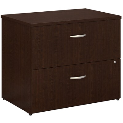Westfield by Bush Business Furniture 36W 2Dwr Lateral File finished in Mocha Cherry for classic styling with clean lines. Enjoy a convenient work and storage solution with file drawers that accommodate letter, legal, and A4 sizes. Full-extension ball bearing slides allow easy access and interlocking drawers prevent against tipping. Utilize the Lateral Files matching height with Westfield desks components to further expand your work surface. Constructed with thermally fused laminate for durability and superior resistance to scratches and stains. This product is also compatible with the Westfield Elite Collection for an expanded offering and cohesive style. Meets ANSI/BIFMA test standards in place at time of manufacture. The Westfield Collection is backed by Bush Business Furniture's 10-Year Warranty. American made with U.S. and imported parts.