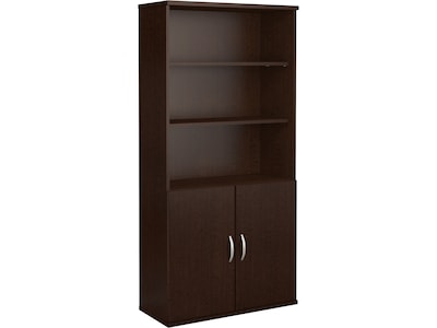 The Bush Business Furniture Westfield 36W 5 Shelf Bookcase with Doors brings open display space and concealed storage to your office. Backed by commercial-grade quality, the Bookcase boasts a classic design and includes three adjustable shelves for displaying books, binders or objects of varying heights. Two doors with self-closing Euro-style hinges conceal the lower shelves, providing the perfect place for office supplies. Two fixed shelves ensure stability, while the heavy-duty construction stands up to years of use. Add one Bookcase to your home or office, or combine two or more to create a storage wall. Westfield offers endless layout options, expansion opportunities and 7 finishes. This affordable office furniture withstands the rigors of a 40-plus hour work week and comes with a 10 Year Warranty. American made with U.S. and imported parts.