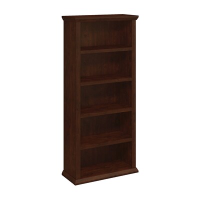 The Yorktown 5-Shelf Bookcase by Bush Furniture melds your home office storage and display needs together to create a beautiful and functional space. Comes with two fixed shelves for stability and three adjustable shelves so you can display books, collect cables, and artwork where you want them most. See the full line for coordinating items available, all backed by the Bush Furniture 1-Year manufacturer's warranty.