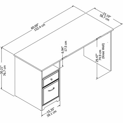 The Bush Furniture Cabot 60W Computer Desk with Drawers presents a home office solution with transitional style. Take advantage of the 60-inch desk surface to spread out with a computer, books, and all the materials you need to power through your next project or assignment. The durable desktop supports up to 200 pounds and includes built-in wire management to keep cords and cables out of the way while you work. A single file drawer opens on smooth full-extension ball bearing slides for an effortless reach to letter, legal, and A4-size paperwork. The box drawer organizes writing utensils, notepads, and other small office supplies while the open cubby shelf is perfect for work-in-progress and frequently used materials. This home office desk with storage has been rigorously tested to meet or exceed ANSI/SOHO quality standards for safety and performance and is backed by a 1 Year Warranty.