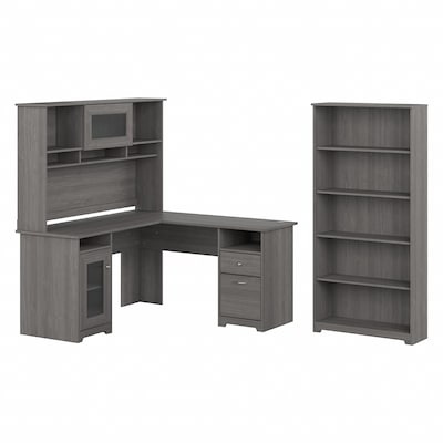 Bush Furniture Cabot 60"W L Shaped Computer Desk with Hutch and 5 Shelf Bookcase, Modern Gray (CAB011MG)
