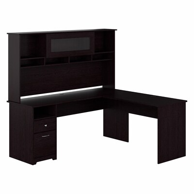 Bush Furniture Cabot 72"W L Shaped Computer Desk with Hutch and Drawers, Espresso Oak (CAB053EPO)
