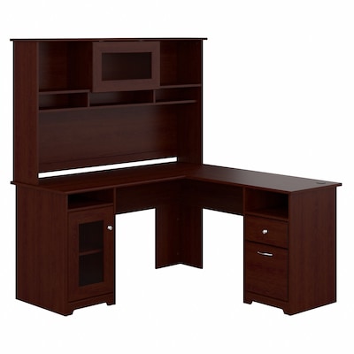 Bush Furniture Cabot 60"W L Shaped Computer Desk with Hutch and Storage, Harvest Cherry (CAB001HVC)