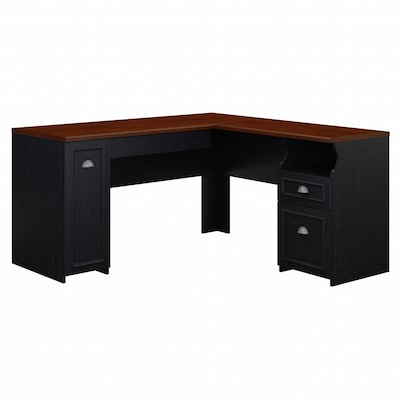 Bush Furniture Fairview 60"W L Shaped Desk with Drawers and Storage Cabinet, Antique Black/Hansen Cherry (WC53930-03K)