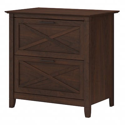 The Bush Furniture Key West 2 Drawer Lateral File Cabinet provides a casual storage component that works in any room. The unique X pattern accent on the drawer panels has a relaxed style with a sturdy and attractive post leg design. Key West features the look of natural reclaimed wood with an authentic Bing Cherry finish with Aged Bronze hardware accents. Two file drawers accommodate letter and legal size files and are built with full extension ball bearing slides. This filing cabinet matches the height of any Key West Desk. Meets ANSI/SOHO standards for safety and performance and is backed by the Bush Furniture 1 Year Manufacturer's Warranty.