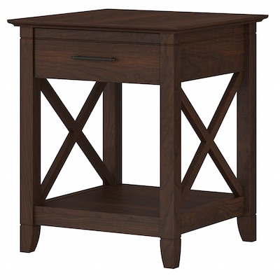 The Bush Furniture Key West end table with storage is a perfect way to bring the feel of a coastal retreat right to your living room. Highlighted by its X-pattern accents and your choice of several attractive finishes, this small side table is a natural fit in homes that embrace cottage and farmhouse styling. A box drawer organizes writing utensils, notepads, TV remotes, and more, while the lower shelf is perfect for storing reading materials and other household items. The surface offers more than enough room for a lamp, plant, or decorations that give your space a personal touch. Use the end table on its own, or combine it with coordinating Key West products for a complete living room furniture set. This accent table has been rigorously tested to meet Bush Furniture standards for safety, performance, and durability and is backed by a 1-year manufacturer limited warranty.