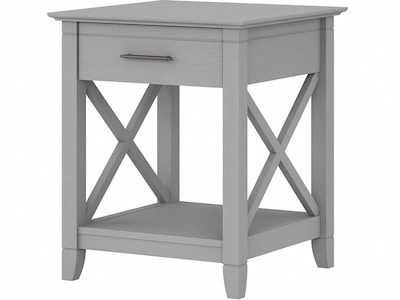 The Bush Furniture Key West end table with storage is a perfect way to bring the feel of a coastal retreat right to your living room. Highlighted by its X-shaped accents and your choice of several attractive finishes, this small side table is a natural fit in homes that embrace cottage and farmhouse styling. A box drawer organizes writing utensils, notepads, TV remotes, and more while the lower shelf is perfect for storing reading materials and other household items. The surface offers more than enough room for a lamp, a plant, or decorations that give your space a personal touch. Use the end table on its own, or combine it with coordinating Key West products for a complete living room furniture set. This accent table has been rigorously tested to meet Bush Furniture's standards for safety, performance, and durability and is backed by a 1-year manufacturer warranty.