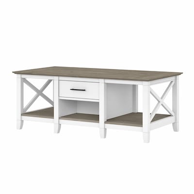 Bush Furniture Key West 47" x 24" Coffee Table, Shiplap Gray/Pure White (KWT148G2W-03)