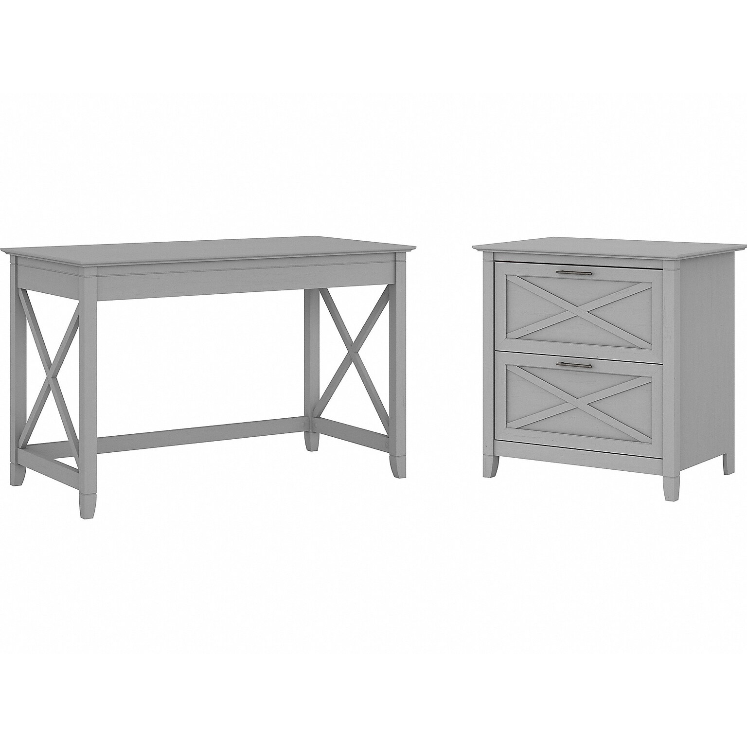 Bundle includes: 48" writing desk and two-drawer lateral file cabinet