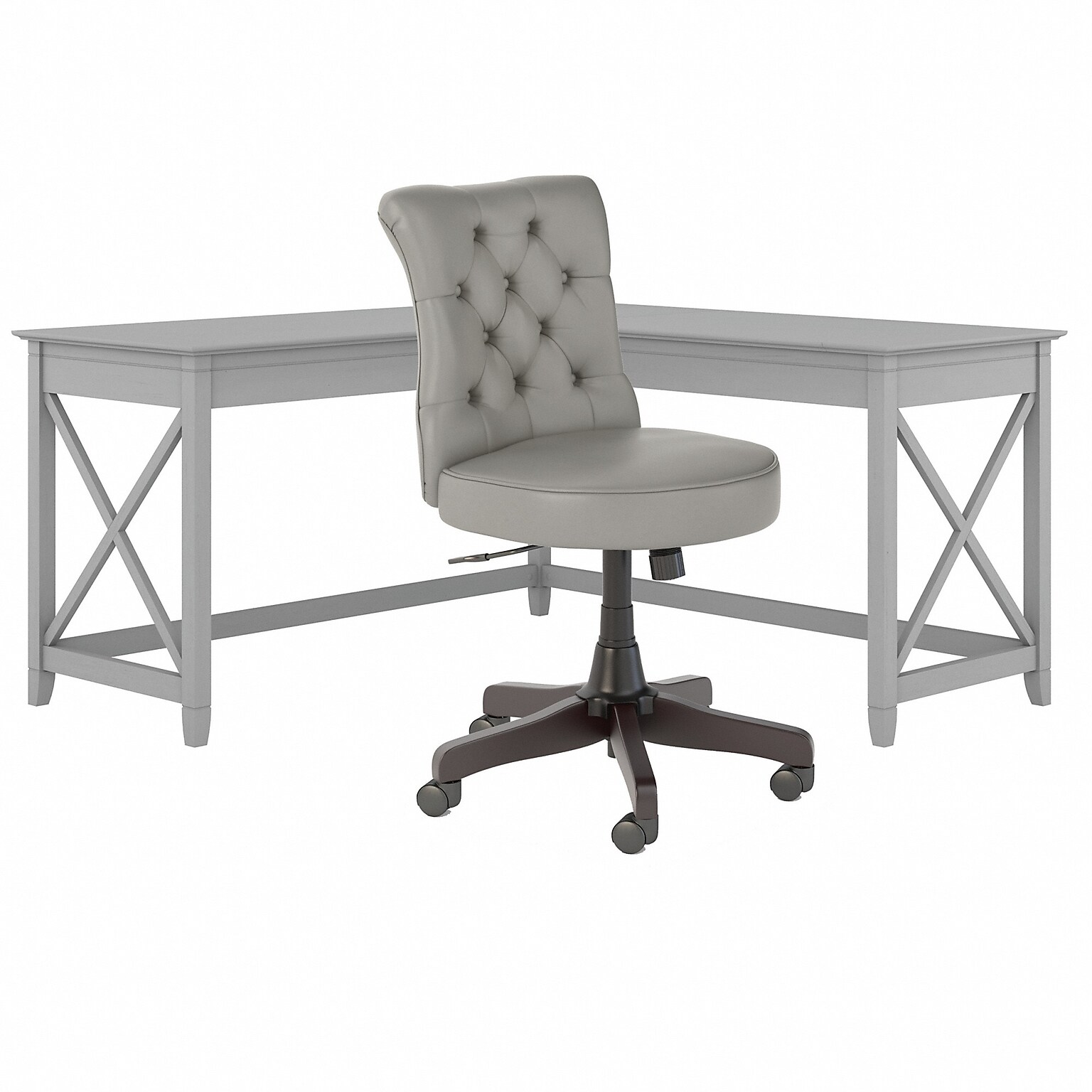 Bush Furniture Key West 60" L-Shaped Desk with Mid-Back Tufted Office Chair, Cape Cod Gray (KWS045CG)