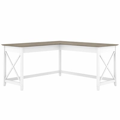 Bush Furniture Key West 60" L-Shaped Desk, Shiplap Gray/Pure White (KWD160G2W-03)
