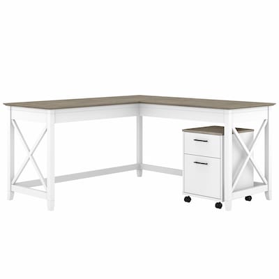 Bush Furniture Key West 60" L-Shaped Desk with Two-Drawer Mobile File Cabinet, Shiplap Gray/Pure White (KWS013G2W)