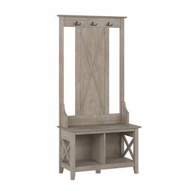 The Bush Furniture Key West hall tree with shoe storage bench offers an entryway solution that gives your home a touch of casual style. This entryway organizer has space for shoes, outerwear, and accessories, so they're right where you need them when it's time to go. The hall tree includes three double-prong coat hooks for hanging jackets, hats, scarves, and more. The shoe bench supports up to 250 lbs., so you can take a seat while putting on or removing footwear. Stash your sneakers, boots, and other shoes inside the open compartment underneath the storage bench to maintain a clutter-free mudroom. X-shaped accents convey a casual appearance that works well with cottage, coastal, and modern farmhouse style. This entryway bench and hall tree set has been rigorously tested to meet Bush Furniture standards for safety, durability, and performance and is backed by a 1-year warranty.