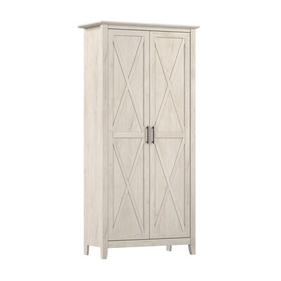 The Bush Furniture Key West Tall Storage Cabinet with Doors and Shelves offers an organization solution that brings a touch of casual style to any residential space. Featuring a design that’s as versatile as it is practical, this 2 door farmhouse cabinet provides an ideal way to store important work materials, a collection of books or other media, miscellaneous household items and more. Two shelves are fixed for stability while three can be raised or lowered to accommodate items of various sizes. Each shelf supports up to 25 pounds, so storing larger materials and equipment is never a problem. The stable design also includes wall attachment hardware for family-friendly safety in any home office or living space. This tall accent cabinet with doors has been meticulously tested to meet or exceed industry standards for safety and performance and is backed by a 1 Year Manufacturer’s Warranty.