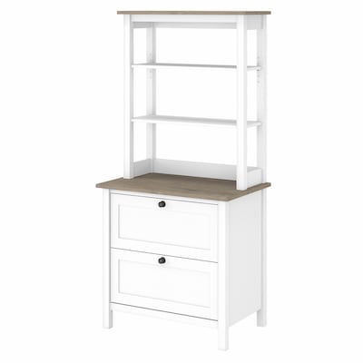 The Bush Furniture Mayfield bookcase with drawers combines casual looks with a practical design that makes organizing books and paperwork easy. Keep paperwork in order while showing off your favorite books, pictures and decorations with storage that suits your casual home. Highlighted by its relaxed modern farmhouse style, the Bush Furniture Mayfield bookcase with drawers makes a great addition to virtually any living space. Two file drawers open on smooth full-extension ball bearing slides for an effortless reach to legal, letter and A4-size documents. A hutch attaches to the top of the filing cabinet to add an open storage area with one fixed shelf for stability and one shelf that can be raised or lowered to accommodate items of various sizes. Each shelf supports up to 25 pounds, so you can store your collection of paperback and hardcover books or display larger decorations with confidence. This bookcase with drawers is tested to meet ANSI/SOHO standards for safety and performance and is backed by a 1-year warranty.