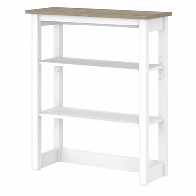 The Bush Furniture Mayfield tall hutch organizer combines casual looks with a practical design that makes showing off books and decorations easy. Organize your personal library or display pictures and decorations with shelf storage that suits your casual home. Highlighted by its relaxed modern farmhouse style, the Bush Furniture Mayfield tall hutch organizer is a perfect way to brighten up any living space with your favorite decor. Attach the hutch to either the Mayfield lateral file cabinet or accent storage cabinet (coordinating items sold separately) to add an open area for storage and display. One shelf is fixed for stability while the other can be raised or lowered to accommodate items of various sizes. Each shelf supports up to 25 pounds, so you can store a collection of books or show off larger decorations with confidence. Wall attachment hardware is included for safety and security. This cabinet hutch is tested to meet ANSI/SOHO standards for safety and performance and is backed by a 1-year warranty.