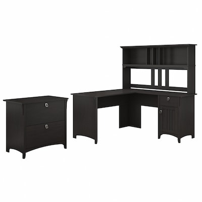Bush Furniture Salinas 60"W L Shaped Desk with Hutch and Lateral File Cabinet, Vintage Black (SAL005VB)