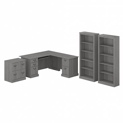 Bush Furniture Saratoga 66"W L Shaped Computer Desk with File Cabinet and Bookcase Set, Modern Gray (SAR002MG)