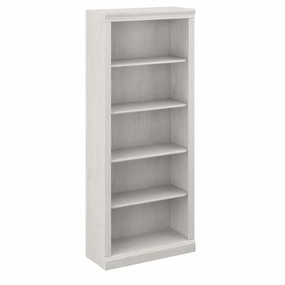 Enjoy the refined elegance of timeless traditional styling while showcasing your favorite books and decorations with the Bush Furniture Saratoga tall five-shelf bookcase. A perfect choice for virtually any office or private study, this vertical bookcase features three adjustable shelves for flexible storage space and two fixed shelves for strength and stability. Each shelf supports up to 25 lbs., so you can organize your personal library and display larger items with confidence. Hardware is included to safely anchor the tall bookcase to a wall. The bookcase's classic appearance is enhanced by decorative top, base, and side rail detailing. This tall bookcase has been tested to meet ANSI/BIFMA standards for safety and performance and is backed by a 10-year warranty. Complete your workspace with a Saratoga desk, lateral file cabinet, and office chair (coordinating items sold separately).