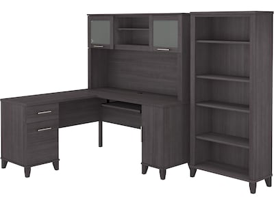 Bush Furniture Somerset 60"W L Shaped Desk with Hutch and 5 Shelf Bookcase, Storm Gray (SET010SG)