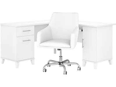 Bush Furniture Somerset 60"W L Shaped Desk with Mid Back Leather Box Chair, White (SET022WH)