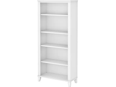 Turn any space into your own personal library with the Bush Furniture Somerset five-shelf bookcase. With a tapered leg design and white finish, this bookcase is a perfect choice to complete any home office or living space. Two shelves are fixed to provide structural strength, and three are adjustable so your items are sure to fit. The height of the bookcase matches that of a Somerset desk and hutch combination (sold separately) to create a coordinated appearance. Its sturdy construction and durable laminate finish allow you to display books, decorations, and more for years to come. This tall bookcase is tested to meet ANSI/SOHO standards for safety and performance and is backed by the Bush Furniture 6-year manufacturer warranty.