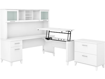 Bush Furniture Somerset 72"W 3 Position Sit to Stand L Shaped Desk with Hutch and File Cabinet, White (SET016WH)